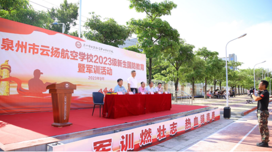 璞千琢為玉,鐵百煉成鋼。經(jīng)歷了5天的軍訓(xùn),云揚(yáng)學(xué)子迎來(lái)了軍訓(xùn)成果檢驗(yàn)的時(shí)刻。9月9日上午,泉州市云揚(yáng)航空職業(yè)技術(shù)學(xué)校2023級(jí)軍訓(xùn)閉營(yíng)式隆重舉行。出席軍訓(xùn)閉營(yíng)式的領(lǐng)導(dǎo)有:學(xué)校黨支部潘向東書記、杜成達(dá)常務(wù)副校長(zhǎng)、陳炳耀副校長(zhǎng)、許碧奎副校長(zhǎng)、港灣校區(qū)執(zhí)行校長(zhǎng)柯成功、軍訓(xùn)總教官(陳雄鳴),大會(huì)由學(xué)工處副主任張鵬主持。全體同學(xué)以飽滿的熱情和昂揚(yáng)的斗志接受領(lǐng)導(dǎo)、教官和老師們的檢閱。
