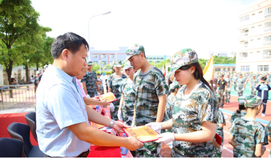 學(xué)生工作處張鵬副主任宣讀表彰決定:30名軍訓(xùn)學(xué)員以及3個(gè)班級(jí)受到表彰,與會(huì)領(lǐng)導(dǎo)為優(yōu)秀學(xué)員代表和優(yōu)秀連隊(duì)頒獎(jiǎng)。