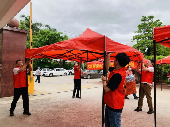 領(lǐng)導(dǎo)們身穿志愿者馬甲,