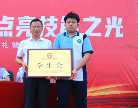 校學(xué)生會(huì)是在校團(tuán)委領(lǐng)導(dǎo)下的一支先進(jìn)的學(xué)生骨干隊(duì)伍,主要負(fù)責(zé)各項(xiàng)常規(guī)檢查,服務(wù)于全校師生,在學(xué)校組織的各項(xiàng)活動(dòng)中擔(dān)任學(xué)生志愿者的角色,在平常工作中擔(dān)任老師的左膀右臂。本次典禮舉行了學(xué)生會(huì)授牌儀式,學(xué)校黨支部潘向東書記為學(xué)生會(huì)授牌并希望學(xué)生會(huì)全體成員秉承優(yōu)良作風(fēng),卓厲奮發(fā),勇毅前行,承載起厚望,砥礪前行結(jié)碩果,不負(fù)韶華譜新篇!