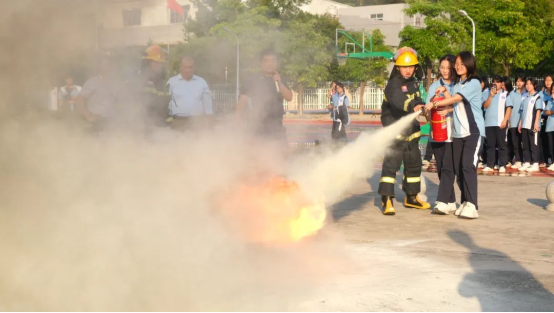 最后許碧奎副校長進(jìn)行本次消防演練總結(jié):此次消防安全演練進(jìn)校園活動,以“培訓(xùn)+演練”的方式,讓大家零距離接觸消防、認(rèn)識消防、體驗消防,通過沉浸式體驗讓大家進(jìn)一步了解掌握消防器材的使用及火災(zāi)的處理流程,增強(qiáng)安全防火意識,同時為加強(qiáng)校園消防安全管理工作,創(chuàng)建安全校園打下堅實基礎(chǔ)。
