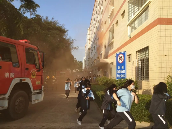 培訓(xùn)結(jié)束后,我校聯(lián)合紫山消防救援站在宿舍樓組織師生進(jìn)行了消防逃生疏散應(yīng)急演練。參加學(xué)生用“濕毛巾”掩口掩鼻,低下身子,按照安全逃生路線,迅速有序地撤出,跑到指定的安全地帶。