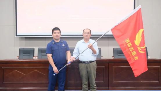 惠安縣為消防大隊向我校消防志愿者服務(wù)隊授旗。