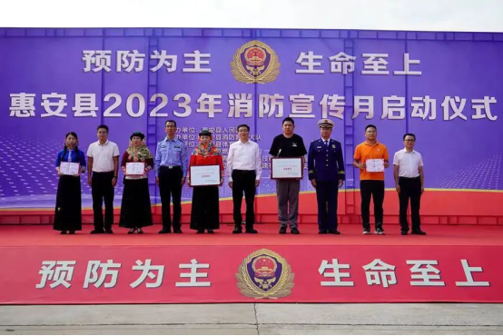 11月9日下午,惠安縣2023年消防宣傳月啟動(dòng)儀式在縣體育館舉行??h委常委、常務(wù)副縣長蔡旭萌出席并致辭,縣公安局、應(yīng)急局、消防救援大隊(duì)、消安委成員單位、各鎮(zhèn)相關(guān)負(fù)責(zé)人、消防志愿者及全縣消防安全重點(diǎn)單位負(fù)責(zé)人、先進(jìn)集體獲獎(jiǎng)代表、先進(jìn)個(gè)人獲獎(jiǎng)成員等200余人參加了活動(dòng)。
