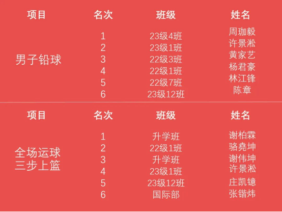 陳炳耀副校長(zhǎng)宣布體育道德風(fēng)尚獎(jiǎng)獲獎(jiǎng)班級(jí)及團(tuán)體總分前六名名單。