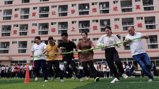 運(yùn)動(dòng)場(chǎng)上的較量,不僅是個(gè)人力量的角逐,更是團(tuán)隊(duì)合作力量的展現(xiàn)。師生分別派出代表參加團(tuán)隊(duì)趣味賽,在旋風(fēng)跑、呼啦圈接力,集體跳大繩項(xiàng)目中齊心協(xié)力,做彼此最堅(jiān)實(shí)的后盾和最默契的隊(duì)友,互相配合,并肩作戰(zhàn),奮勇爭(zhēng)先。