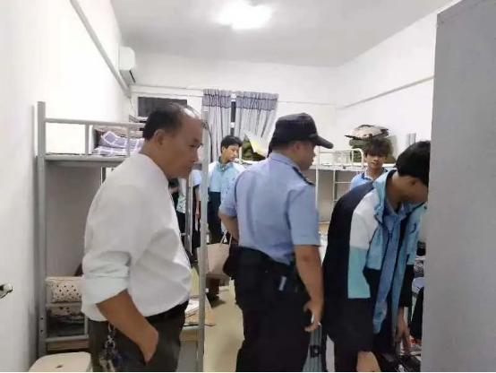 在許碧奎副校長(zhǎng)、學(xué)工處全體工作人員的陪同下,一行人著重檢查宿舍安全。檢查過程中,警官們結(jié)合實(shí) 際攜帶物品詳細(xì)地給同學(xué)們講解了什么是禁帶物品、什么是危險(xiǎn)器械及怎樣杜絕宿舍安全隱患等方面知識(shí)。并結(jié)合生動(dòng)詳實(shí)的典型案例,為同學(xué)們敲響了警鐘。