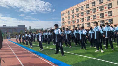 上午八點,伴隨著雄壯的音樂,在主持人的指引下,國旗班的同學(xué)們護衛(wèi)著莊嚴(yán)的國旗,走在入場方陣的最前列。他們踏著堅定的步伐,面帶笑容,精神抖擻,盡情展現(xiàn)著新時代青少年學(xué)子堅韌頑強的精神和熱情澎湃的活力。