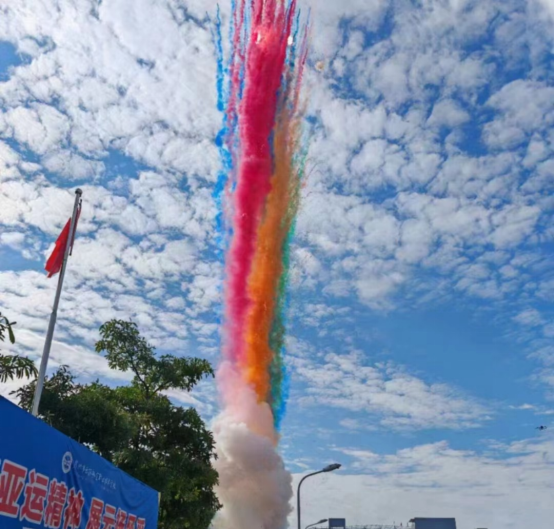 隨著裁判員和運動員代表宣誓環(huán)節(jié)的結(jié)束,潘向東書記宣布“泉州市云揚航空職業(yè)技術(shù)學(xué)校第二屆田徑&趣味運動會正式開幕”。伴隨著絢爛的煙火在開幕式會場升起,全校師生共同歡呼,齊聲共迎運動盛會的開啟。