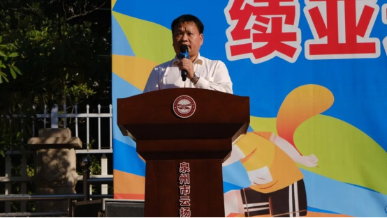 潘向東書記宣布2023年泉州市云揚航空學校第二屆田徑&趣味運動會閉幕。