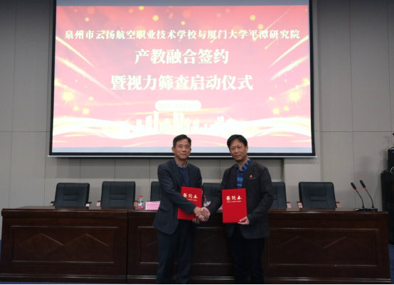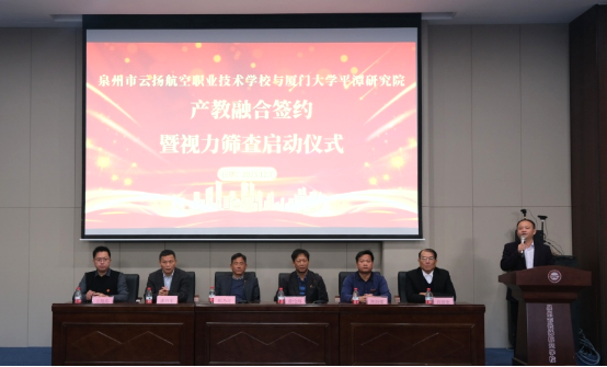 為進(jìn)一步深化校企融合,打造校企協(xié)同育人共同體,推進(jìn)校企合作技能人才培養(yǎng)模式不斷升級(jí),12月7日上午,我校與廈門大學(xué)平潭研究院在校本部學(xué)術(shù)報(bào)告廳舉行護(hù)理(眼視光)專業(yè)校企共建簽約暨視力篩查公益活動(dòng)啟動(dòng)儀式。我校鄭乃吉校長(zhǎng)、潘向東書記等校級(jí)領(lǐng)導(dǎo)及招就處工作人員以及廈門大學(xué)平潭研究院院長(zhǎng)助理董倫海、產(chǎn)教研融合中心主任王旭東等院方代表出席了本次儀式。儀式由學(xué)校杜成達(dá)常務(wù)副校長(zhǎng)主持并介紹了此次合作的背景及意義。