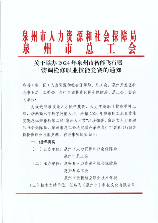 2024年泉州市人力資源和社會保障局、泉州市總工會聯(lián)合舉辦的無人機(jī)競賽將在我校舉辦