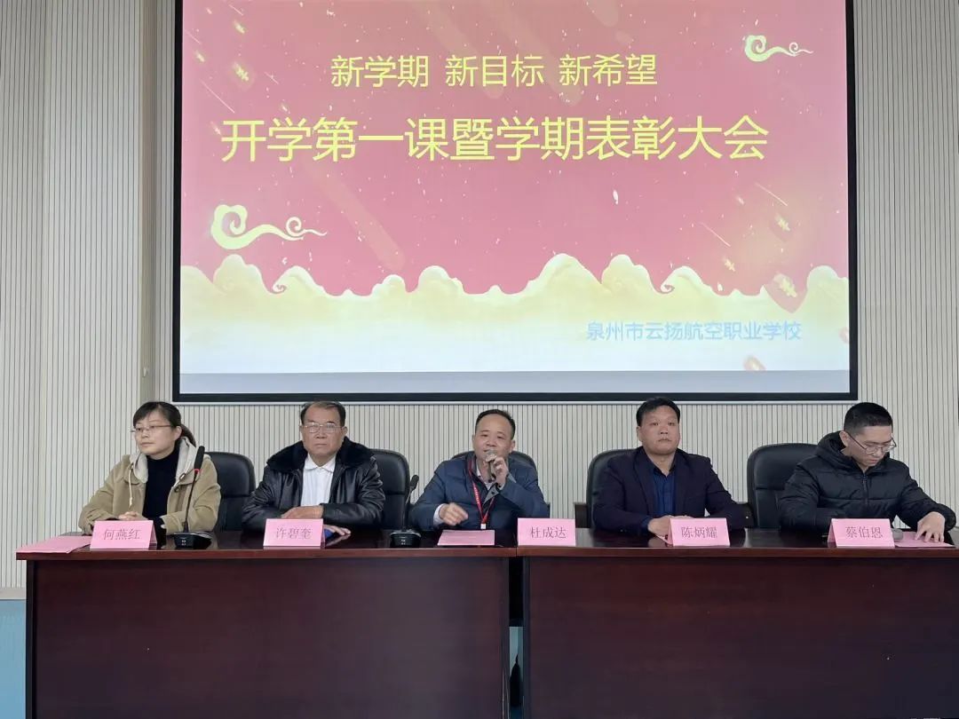 陽(yáng)春布德澤,萬(wàn)物生光輝。隨著云揚(yáng)學(xué)子的歸來(lái),沉寂了一個(gè)多月的校園又開(kāi)始熱鬧了起來(lái)。2月15日下午,我校以“新學(xué)期 新目標(biāo) 新希望”為主題的開(kāi)學(xué)第一課暨學(xué)期表彰大會(huì)在階梯教室拉開(kāi)了序幕,杜成達(dá)常務(wù)副校長(zhǎng),陳炳耀副校長(zhǎng)、許碧奎副校長(zhǎng)、教學(xué)部何燕紅主任出席,團(tuán)委負(fù)責(zé)人蔡伯恩老師主持會(huì)議。