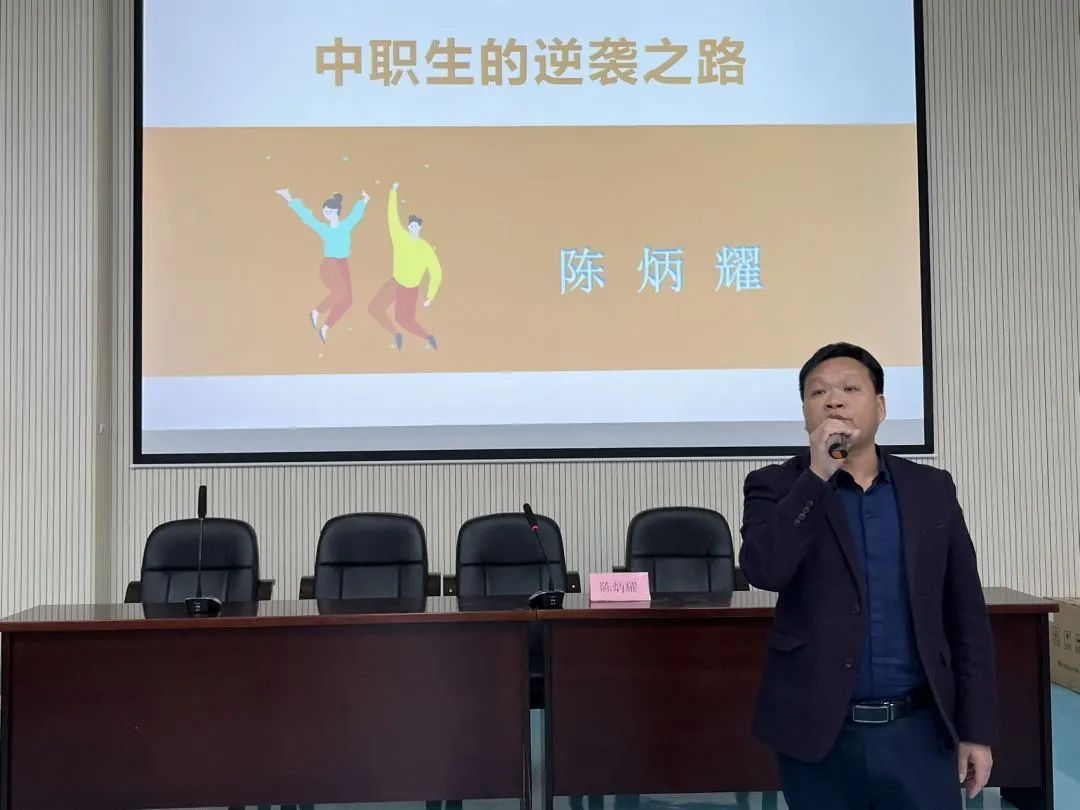 陳炳耀副校長(zhǎng)以“這是不是現(xiàn)在的你?”開(kāi)篇,指出中職生可能存在的現(xiàn)狀:中考失利、沉迷游戲、生活迷茫、沒(méi)有信心、缺乏動(dòng)力,希望云揚(yáng)學(xué)子充分認(rèn)識(shí)自己,杜絕不良習(xí)慣。隨后,陳副校長(zhǎng)通過(guò)邵思程、曾正超、梁智濱等中職生逆襲的故事鼓勵(lì)云揚(yáng)學(xué)子要明確目標(biāo),自信自強(qiáng),努力發(fā)光。最后,他還以張煥騰從中職生升學(xué)到研究生的事例分析了最新的《職業(yè)教育法》和職業(yè)教育的廣闊前景,云揚(yáng)學(xué)子深受啟發(fā),信心倍增。