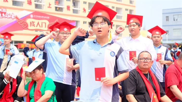 滾滾而來的年華,迎來永遠(yuǎn)熱烈的十八歲。站在十八歲的起點(diǎn),全體學(xué)生面向國旗、手持憲法、莊嚴(yán)宣誓。誓言鏗鏘有力,志向高遠(yuǎn)無窮。