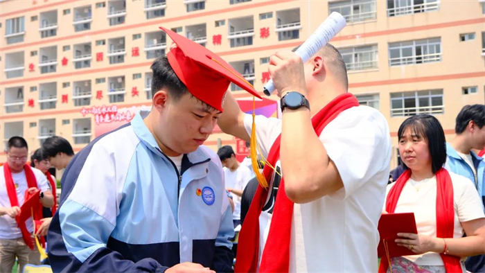 君子始冠,必祝成功;加冠之禮,以示成人。隨著主持人鏗鏘的加冠詞,與會領(lǐng)導(dǎo)和家長為云揚(yáng)學(xué)子戴上成人帽、撥穗、正冠,贈(zèng)予他們一份最最神圣的禮物——《中華人民共和國憲法》,提醒云揚(yáng)學(xué)子從這一刻開始將身負(fù)責(zé)任,擔(dān)當(dāng)使命。