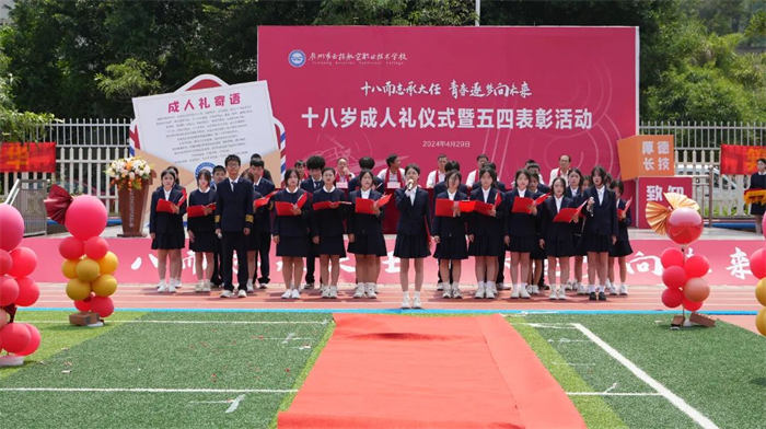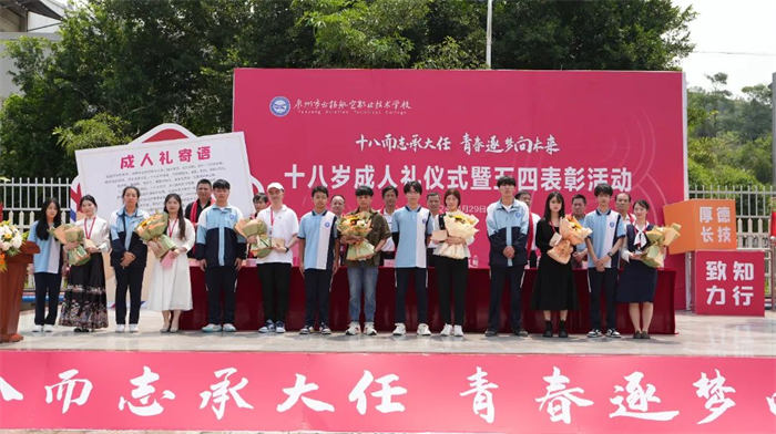 十八歲,是對懵懂幼稚的告別;十八歲,是與成熟穩(wěn)健的相約。成人禮,是少年們過往歲月的贊美詩,更是少年們未來征程的期望歌!至此,泉州市云揚(yáng)航空職業(yè)技術(shù)學(xué)校十八歲成人禮儀式暨五四表彰活動(dòng)在一聲聲深情祝福的陪伴下圓滿落幕!