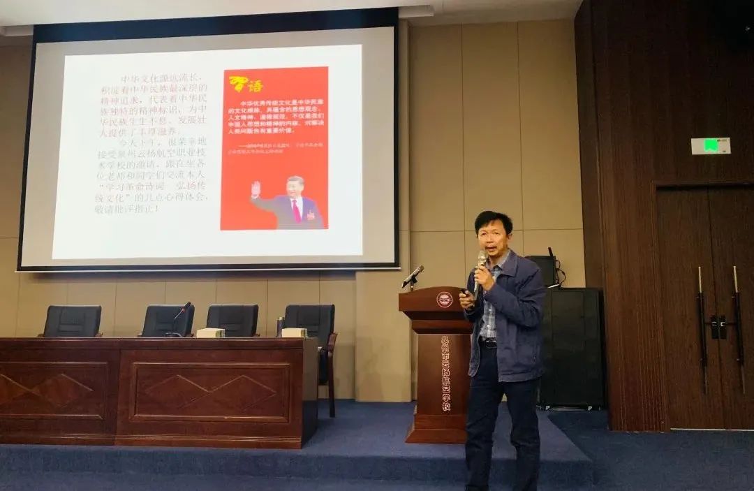 講座伊始,郭建生書記從習(xí)近平總書記關(guān)于傳統(tǒng)文化的重要講話講起,向在場師生們分享了傳統(tǒng)文化與革命詩詞名篇的魅力、學(xué)習(xí)革命詩詞名篇的意義,并對他們弘揚(yáng)傳統(tǒng)文化,學(xué)習(xí)革命詩詞名篇寄予了厚望。