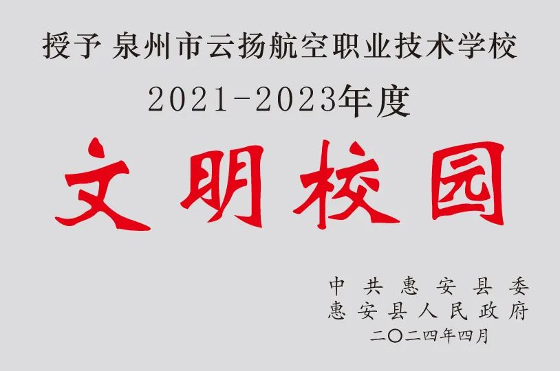 初心如磐,文明如歌,承澤致遠,砥礪奮發(fā)!泉州市云揚航空職業(yè)技術(shù)學校將以此次榮獲“文明校園”榮譽稱號為契機,不忘立德樹人初心,牢記為黨育人、為國育才使命,持續(xù)奮力譜寫我校精神文明建設(shè)新篇章,做有溫度的教育,讓文明之花在云揚繼續(xù)綻放!