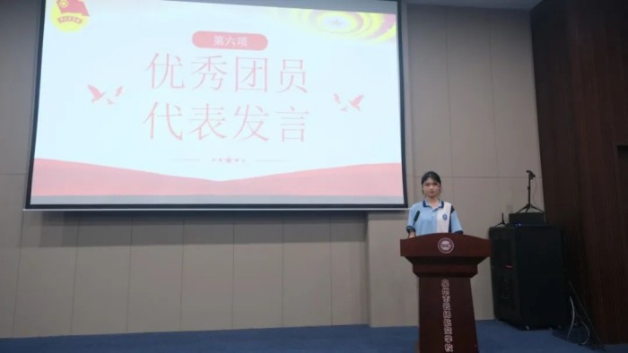 學先鋒榜樣、向優(yōu)秀看齊,才能行穩(wěn)致遠。詹詩琪同學作為優(yōu)秀團員代表向各位團員們分享了自己加入共青團的感受,同時號召各位團員要在實踐中練就過硬本領(lǐng),注重在實踐中學真知,努力成為學有所長、業(yè)有所專、技有所精的時代新人。