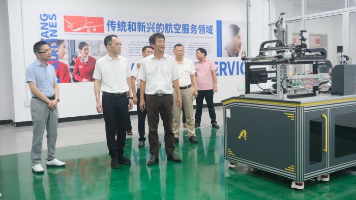 王部長一行在綜合樓大廳聽取學(xué)?;靖艣r、辦學(xué)歷程、辦學(xué)特色的介紹,隨后實(shí)地調(diào)研了學(xué)校飛機(jī)維修、機(jī)電一體化、眼視光技術(shù)、無人機(jī)等各專業(yè)實(shí)訓(xùn)室及航空研學(xué)館,并關(guān)心了解我校產(chǎn)教融合中心的建設(shè)進(jìn)度。