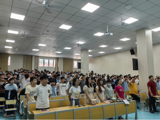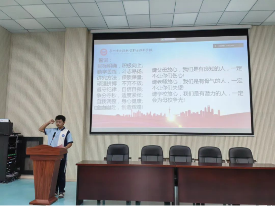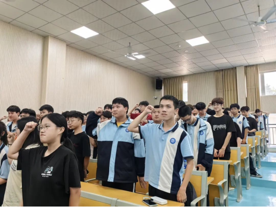 王俊杰同學(xué)為領(lǐng)誓人帶領(lǐng)全體同學(xué)宣誓,在莊嚴(yán)的宣誓中,22級的同學(xué)們表達(dá)了他們對學(xué)習(xí)的熱情和對未來的信心。誓言聲音洪亮,氣勢磅礴,如浪潮般涌動,彰顯青春的無畏和對勝利的渴望。充分展現(xiàn)了他們?nèi)σ愿?,決勝學(xué)考的決心和勇氣。