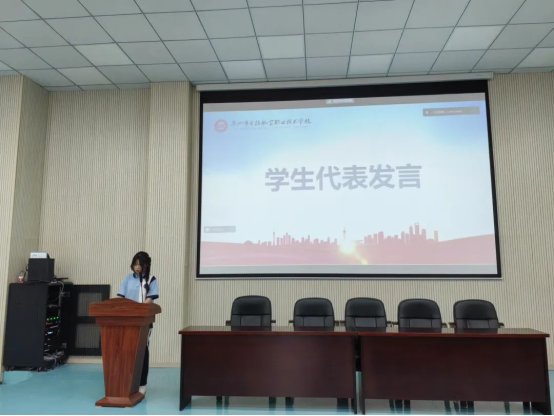 23級學(xué)生代表也上臺發(fā)言表態(tài),她分享了自己的期末學(xué)習(xí)心得,并代表學(xué)弟學(xué)妹們?yōu)?22 級學(xué)生送上了最真摯的祝福,鼓勵他們勇往直前,追尋自己的夢想。