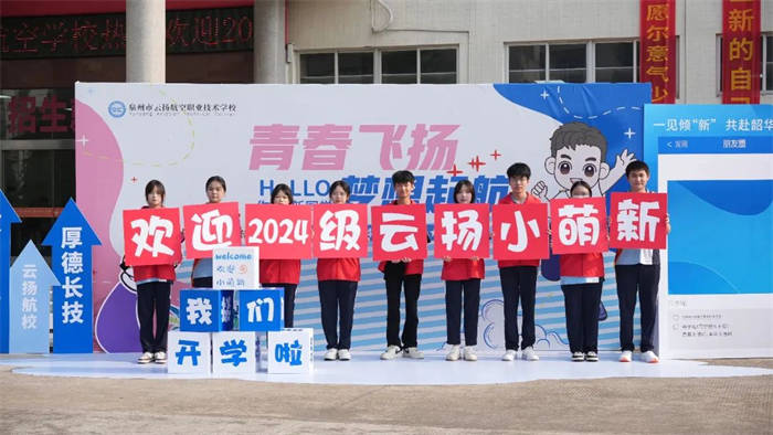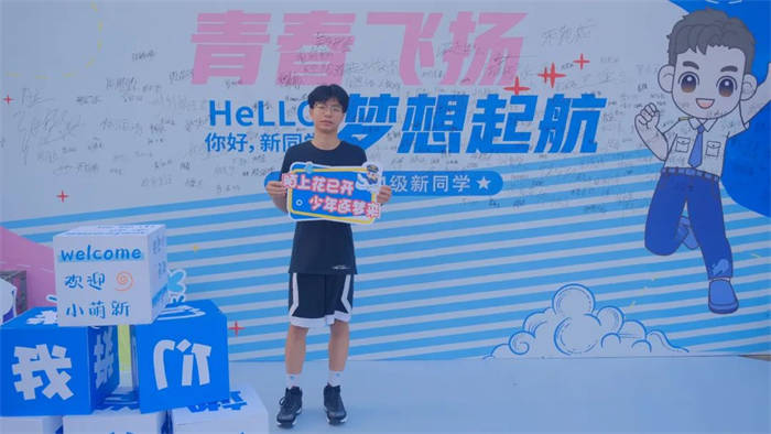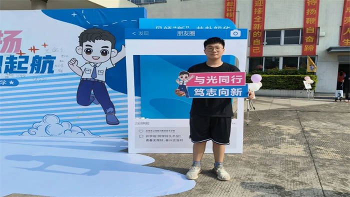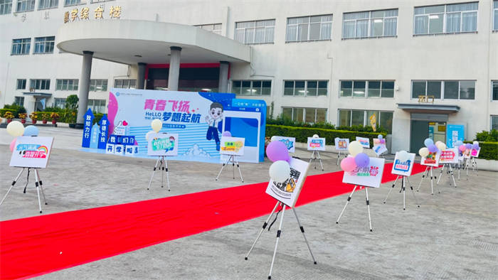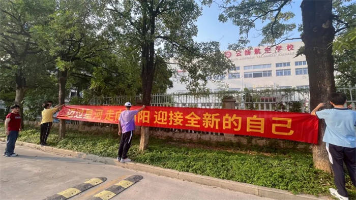 奔赴青春,揚帆啟程校園內(nèi),橫幅高掛,彩旗飄揚
