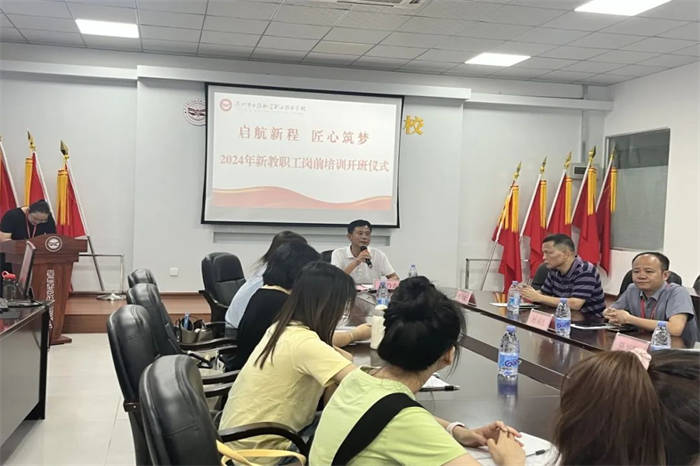 8月26日上午,2024年新教師崗前培訓(xùn)開(kāi)班儀式在黃塘校區(qū)綜合樓大會(huì)議室舉行。校長(zhǎng)鄭乃吉、黨支部書(shū)記潘向東、常務(wù)副校長(zhǎng)杜成達(dá)、副校長(zhǎng)工會(huì)主席陳炳耀等校領(lǐng)導(dǎo)及相關(guān)處室負(fù)責(zé)人參加,開(kāi)班儀式由黨政辦陳云娥副主任主持。
