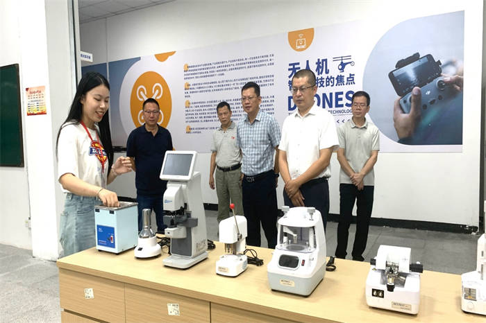 王錦延副主委一行在郭守強(qiáng)理事長及潘向東書記的陪同下,參觀了我校飛機(jī)維修實訓(xùn)室、電子電工實訓(xùn)室、眼視光實訓(xùn)室及航空研學(xué)館,對我校工學(xué)交替式“產(chǎn)、學(xué)、研、用”立體式的教學(xué)模式和完善的先進(jìn)齊全的教學(xué)實訓(xùn)設(shè)備表示充分肯定。