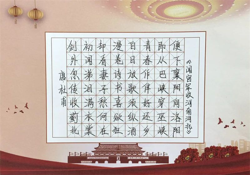 這些作品不僅展現(xiàn)了學(xué)生們的藝術(shù)修養(yǎng),更深刻傳達(dá)了他們對祖國的深情厚意和美好祝愿。在這樣一個(gè)全民共慶的時(shí)刻,云揚(yáng)的學(xué)子們以他們的書畫創(chuàng)作,向祖國母親獻(xiàn)上了最真誠的心意。讓我們一同在這場云端的藝術(shù)盛會(huì)上,領(lǐng)略學(xué)生們的愛國熱情和藝術(shù)魅力,共同祈愿偉大的祖國繁榮昌盛,未來更加輝煌!