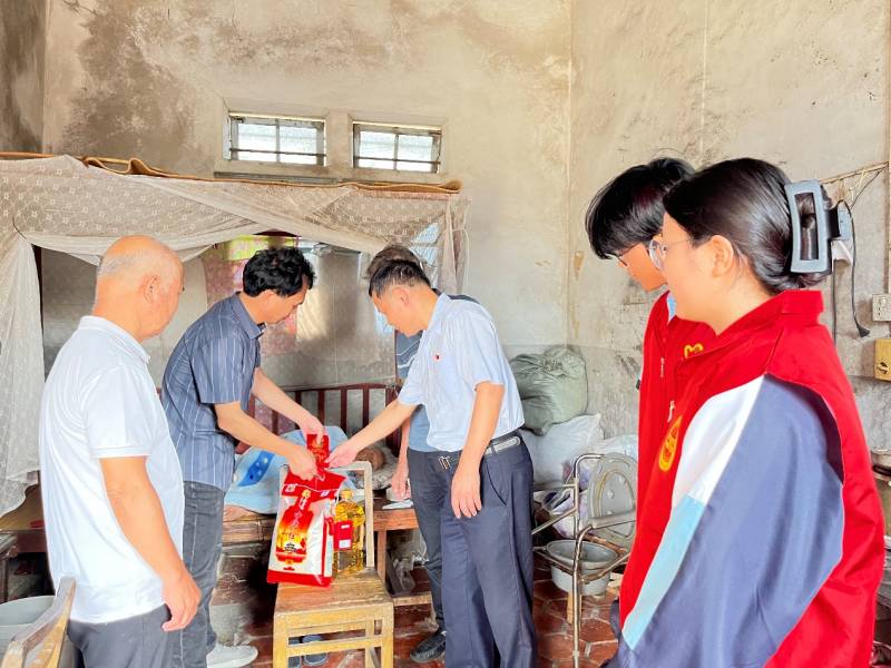 隨著活動的深入,在前郭回族村黨總支郭志陽書記和老協會代表的帶領下,我校黨支部潘向東書記和其他黨團員及學生志愿者一行手提慰問品,踏上了慰問高齡老人的旅程。他們輕輕敲開每一扇門,用溫暖的問候和真誠的關心,與老人們拉起了家常,他們耐心傾聽老人們講述過去的故事,詳細了解他們的生活狀況和健康需求,臨別時,還不忘送上節(jié)日的祝福,祝愿他們度過一個安康祥和的重陽節(jié)。