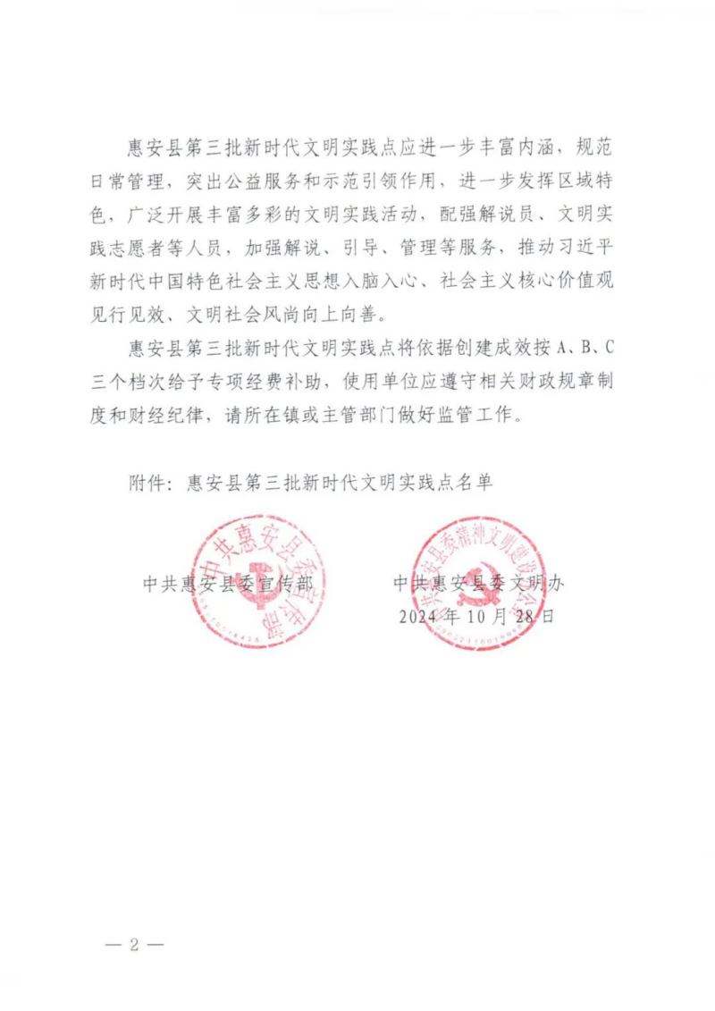 近日,中共惠安縣委宣傳部、中共惠安縣委文明辦聯(lián)合相關部門圍繞陣地打造、制度建設、隊伍培育、活動開展成果成效等項目對申報單位開展資格審核、實地走訪調(diào)研、驗收檢查,在全縣遴選出35個新時代文明實踐點,其中A級5個,B級10個,C級20個,我校云揚航空科學館入選惠安縣第三批A級新時代文明實踐點!