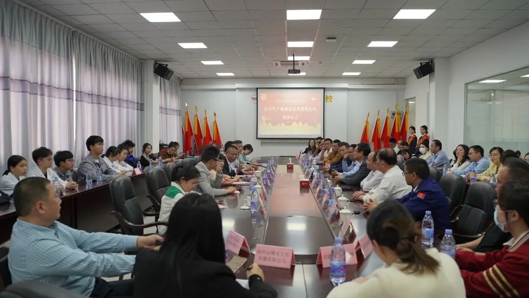 為貫徹落實(shí)黨中央、國(guó)務(wù)院關(guān)于深化產(chǎn)教融合相關(guān)決策部署和《中華人民共和國(guó)職業(yè)教育法》,深入推進(jìn)國(guó)家產(chǎn)教融合試點(diǎn)城市建設(shè),近日,泉州市人社局授予我校“泉州市產(chǎn)教融合應(yīng)用型特色?!狈Q號(hào),并于2023年4月13日在我校舉行揭牌儀式。泉州市人社局黨組書記、局長(zhǎng)許長(zhǎng)春、副局長(zhǎng)鄭強(qiáng),惠安縣政府陳劍虹副縣長(zhǎng)和縣人社局陳世偉局長(zhǎng)、莊旭副局長(zhǎng)等領(lǐng)導(dǎo)以及福建天馬電子有限公司李滿生董事長(zhǎng)等10余家企業(yè)代表出席活動(dòng)。