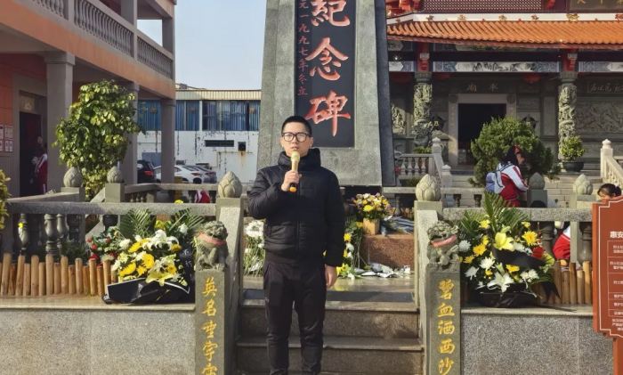 活動(dòng)伊始,全體人員手持鮮花列隊(duì)肅立。主持人現(xiàn)場講述解放軍戰(zhàn)士"疊羅漢救女童"英雄事跡,在場師生靜默聆聽,心中涌動(dòng)著對先烈的無限敬仰。