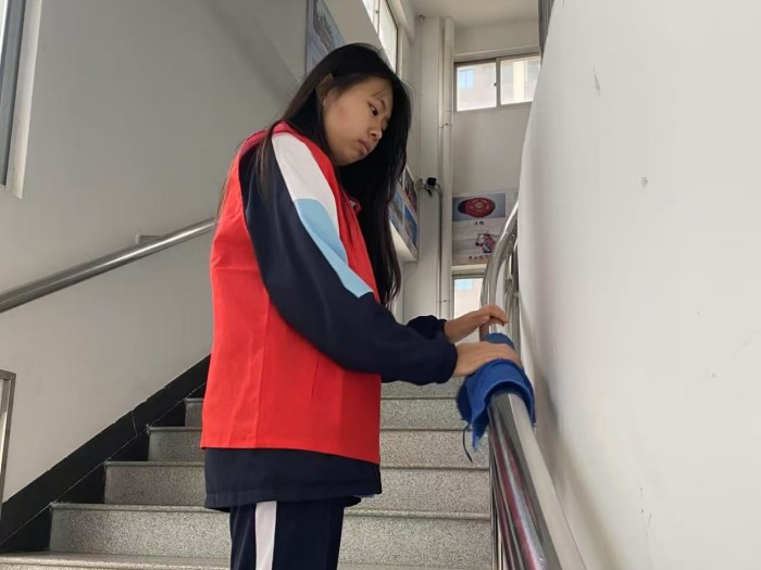 同學們無懼于臟亂與辛勞,積極投身于清掃垃圾、擦拭欄桿的勞動之中,使得校園煥然一新,他們以實際行動踐行著雷鋒精神的真諦,傳遞著溫情與關(guān)懷的暖流。