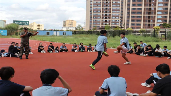 鄭乃吉校長在講話中強調,本次素質拓展正是學校為同學們精心準備的“開學第一課”。他向圓滿完成訓練的同學們表示熱烈祝賀,“你們展現了云揚學子應有的朝氣與擔當”。他充分肯定了大家在訓練中的出色表現,并指出:這場活動不僅實現了從假期到學習的軟著陸,更點燃了集體的心火。他希望同學們能帶著這門“第一課”所賦予的勇氣與默契,真正翱翔啟航,奔赴技能報國的新征程。