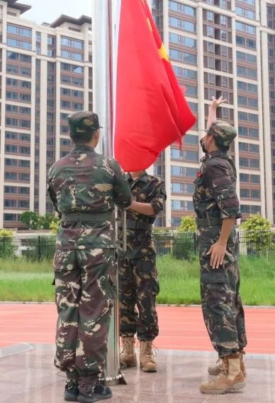 開營儀式在莊嚴(yán)的國歌中正式拉開帷幕。國旗護(hù)衛(wèi)隊(duì)邁著鏗鏘有力的步伐護(hù)送國旗入場(chǎng)。在雄壯的國歌聲中,鮮艷的五星紅旗冉冉升起,全體師生肅立行禮,目光熾熱,展現(xiàn)了云揚(yáng)學(xué)子昂揚(yáng)向上的精神風(fēng)貌和深厚的愛國情懷。