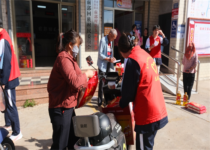 隨著活動(dòng)推進(jìn),慰問(wèn)隊(duì)伍開(kāi)啟了入戶關(guān)懷之旅。在前郭回族村黨總支和老協(xié)會(huì)代表的陪同下,我校師生代表手提慰問(wèn)品,逐一叩響高齡老人的家門(mén)。門(mén)內(nèi),是跨越代際的親切交談——志愿者們耐心聆聽(tīng)老人們講述歲月故事,認(rèn)真記錄他們的生活需求與健康困擾;門(mén)外,是深秋里最溫暖的牽掛。臨別時(shí)一聲聲“祝您安康”,讓重陽(yáng)的溫情在街巷間靜靜流淌。