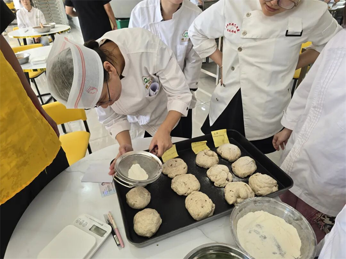 培訓(xùn)中,專業(yè)教師圍繞面包烘焙全流程,系統(tǒng)講授了面粉種類與特性、酵母作用原理、發(fā)酵環(huán)境控制、烘焙時(shí)間把握等核心知識(shí),講解深入淺出、細(xì)致到位。教職工們學(xué)習(xí)熱情高漲,在揉面、發(fā)酵、整形等實(shí)操環(huán)節(jié)反復(fù)練習(xí)、用心揣摩,逐步掌握了面包制作的關(guān)鍵技能。從最初的“烘焙小白”到能夠熟練制作多種經(jīng)典面包,大家的進(jìn)步有目共睹,也為迎接考核打下堅(jiān)實(shí)基礎(chǔ)。