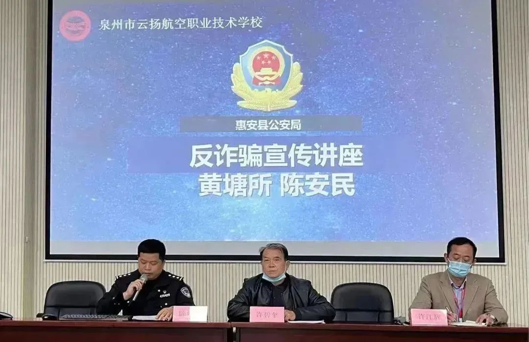 為進(jìn)一步提高我校師生的防詐騙意識和能力,有效減少和遏制校園電信網(wǎng)絡(luò)詐騙案件的發(fā)生,全力守護(hù)校園安全穩(wěn)定,2月23日下午,惠安縣公安局黃塘所陳安民警官帶著反詐“錦囊”走進(jìn)泉州市云揚(yáng)航空職業(yè)技術(shù)學(xué)校,為全校師生開展了開學(xué)“反詐第一課”。