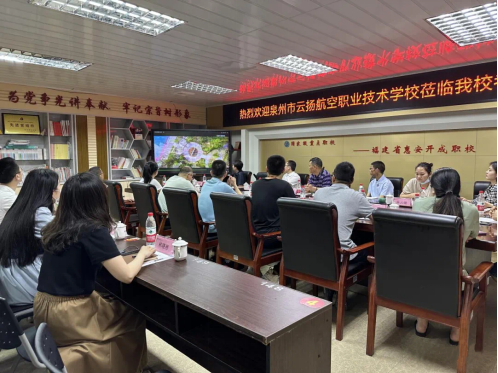 潘向東書記代表我校向惠安開成中專學校介紹了我校的基本情況,并對福建省惠安開成職業(yè)中專學校的熱情接待和在文明校園創(chuàng)建工作方面的傳經(jīng)送寶表示感謝。他指出,惠安開成職專是一所辦學歷史悠久,文化積淀深厚的職業(yè)學校,希望兩校以此次交流活動為起點,建立起長期友好關(guān)系。