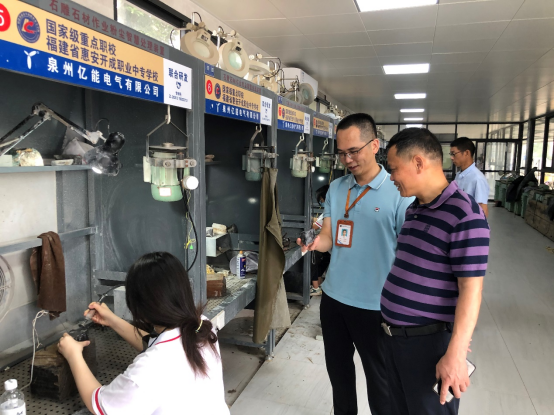 在福建省惠安開成職業(yè)中專學校陳國強副校長及相關(guān)處室負責人的熱情接待和陪同下,我校參訪組一行實地參觀了開成中專的海爾物聯(lián)網(wǎng)實訓基地、師生技能展示室、華僑大愛精神展示廳、法制教育館、國防教育館、校史紀念館和黨史教育館。陳國強副校長向參訪組介紹了學校的基本情況、校園環(huán)境、辦學理念和文化特色,參訪組認真聆聽講解,充分感受文明校園氛圍,對開成中專環(huán)境布局、氛圍布置、特色渲染等方面的用心構(gòu)筑給予了高度贊譽。