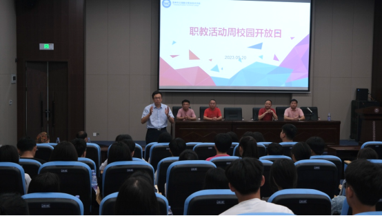 活動(dòng)當(dāng)天,我校迎來(lái)了來(lái)自全市相關(guān)中學(xué)的學(xué)生和家長(zhǎng)們,校園里人頭攢動(dòng),熱鬧非凡。在報(bào)告廳里,學(xué)校遲巖校長(zhǎng)首先代表學(xué)校對(duì)學(xué)生及家長(zhǎng)們的到來(lái)表示熱烈的歡迎。隨后,他對(duì)職業(yè)教育活動(dòng)周的由來(lái)和我校職業(yè)教育活動(dòng)周的開(kāi)展情況作了詳細(xì)介紹,并對(duì)我校的管理體系、育人理念和學(xué)校發(fā)展作了宣講。最后,杜成達(dá)常務(wù)副校長(zhǎng)對(duì)我校專(zhuān)業(yè)設(shè)置、錄取辦法等相關(guān)情況進(jìn)行全面介紹。