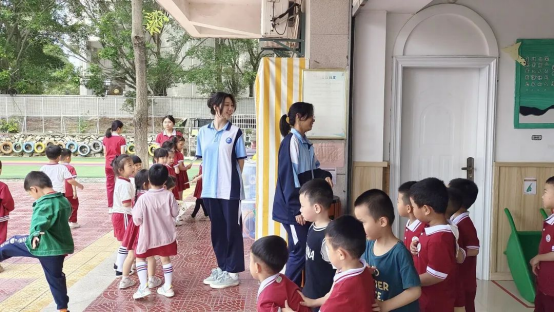 剛開始時小朋友們對我們不熟悉,很靦腆。在十多分鐘的相處后,我發(fā)現(xiàn)他們很熱情,會給我分享他們好玩的東西,還給我們送了禮物。我們陪他們上了科學課還看了他們排練的舞蹈,每個孩子都活力四射,朝氣蓬勃的。此次見習雖然只有半天的時間,但我也體會到了老師的不易。