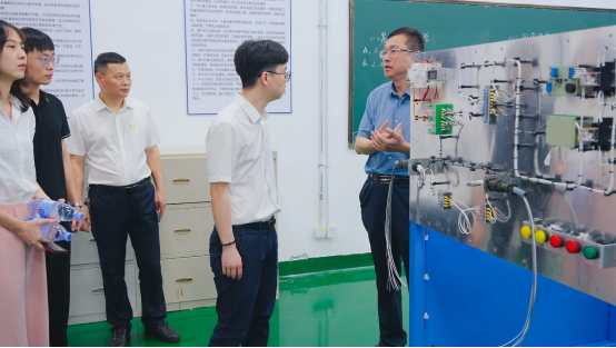 遲巖校長向團(tuán)縣委一行介紹了我校發(fā)展藍(lán)圖,指導(dǎo)組一行參觀了飛機(jī)維修、無人機(jī)應(yīng)用技術(shù)、機(jī)電一體化等實(shí)訓(xùn)教室,觀摩體驗(yàn)了飛機(jī)模擬器操作演練的技能學(xué)習(xí)過程。