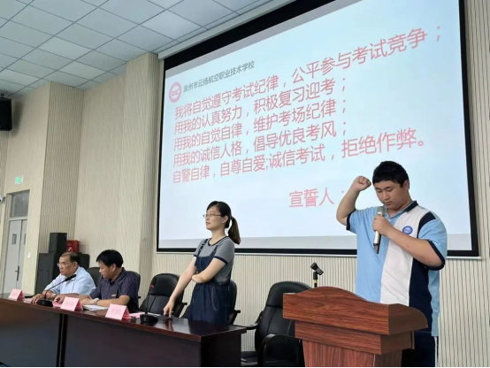 誠(chéng)實(shí)守信是每位云揚(yáng)學(xué)子所應(yīng)遵守的準(zhǔn)則,自古以來(lái)讀書人都以節(jié)操為本、誠(chéng)信為基,我校學(xué)生更應(yīng)該傳承民族美德,樹立道德新風(fēng)。學(xué)生代表吳錦福同學(xué)帶領(lǐng)全體同學(xué)就誠(chéng)信考試作出宣誓: